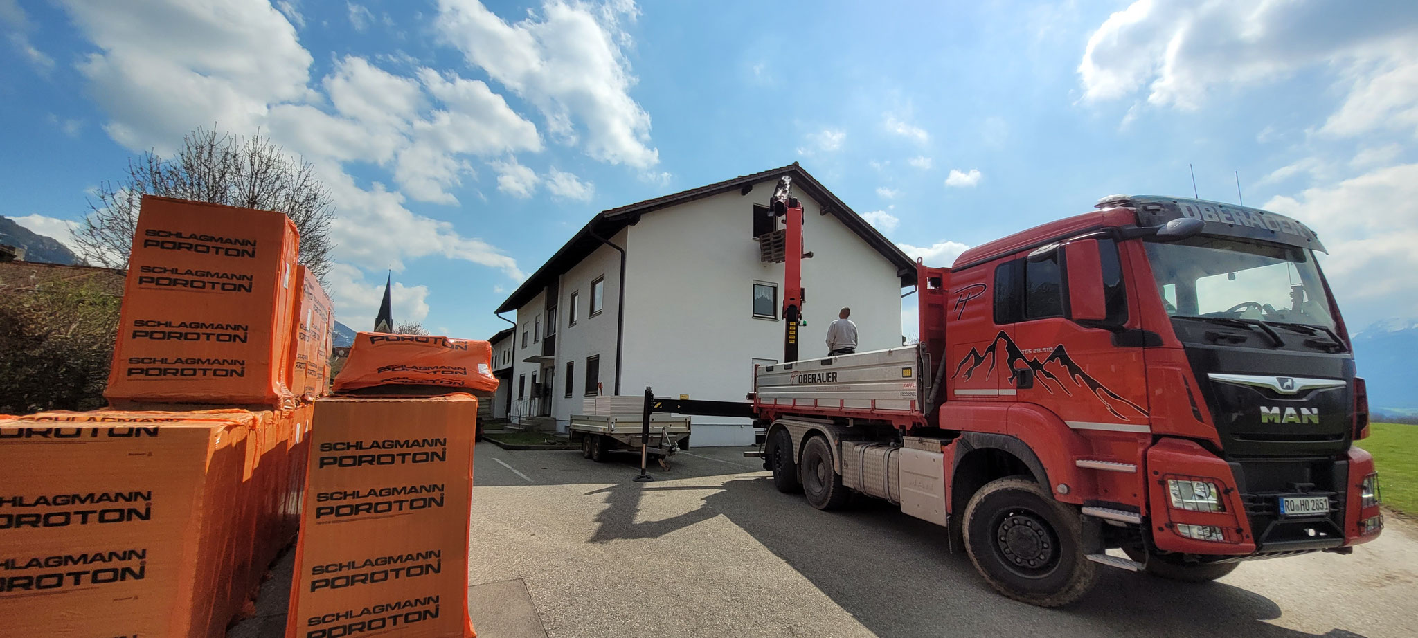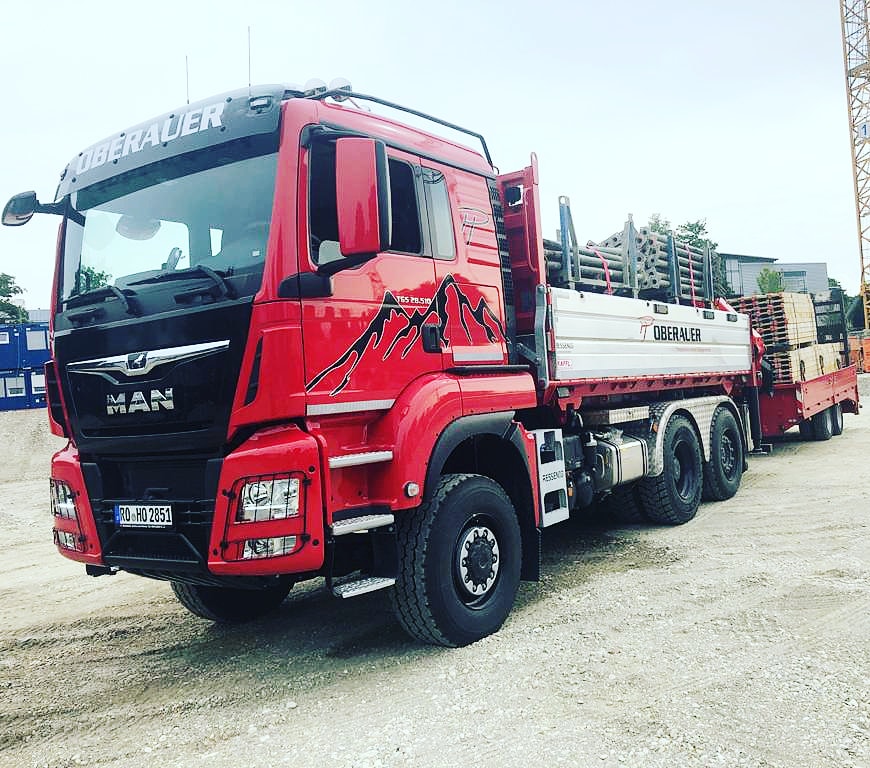Die traditionellen Aufgaben des Baustoff- und Baugütertransports werden mit unseren modernen Kran- und Kipperfahrzeugen erledigt. Schnell - sauber -